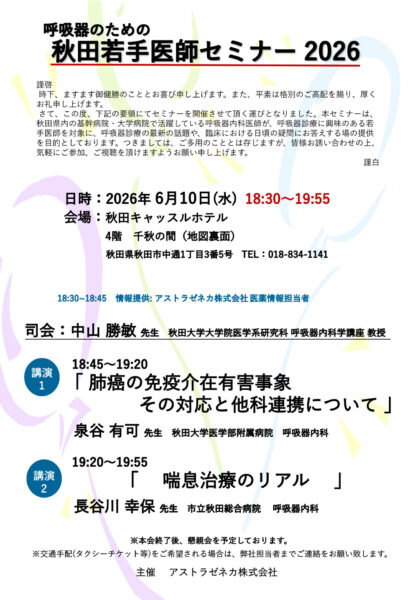 呼吸器のための 秋田若手医師セミナー2026 6月10日(水)